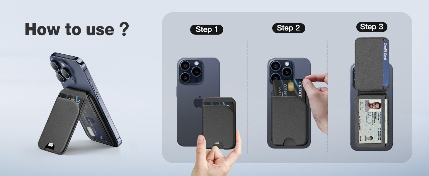 • 2-in-1 design – functions as both a magnetic wallet and a phone stand.